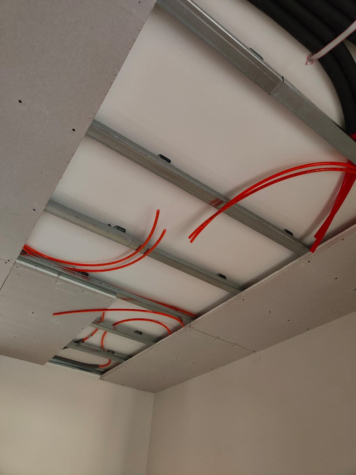 Realizzazione di impianto radiante a soffitto per riscaldamento e raffrescamento, progettato per garantire comfort uniforme ed elevata efficienza energetica.